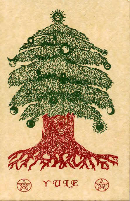 - Árvore de Yule (Árvore de Natal): os costumes modernos que estão associados ao dia cristão do Natal, como a decoração da árvore, o ato de pendurar o visco e o azevinho, queimar a acha de Natal, são belos costumes pagãos que datam da era pré-cristã. O Natal, que acontece alguns dias após o Solstício de Inverno e que celebra o nascimento espiritual de Jesus Cristo, é realmente a versão cristianizada da antiga festa pagã. O nascimento de um Deus no Solstício de Inverno não é exclusivo do Catolicismo, pois muitos “bebês divinos” nasceram nesta época. Mistras é um exemplo claro disso. A tradição relativamente moderna de decorar árvores de Natal é costume que se desenvolveu dos bosques de pinheiro associados à Grande Deusa Mãe.